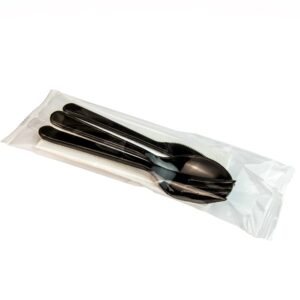 Комплект приборов 5 черный (вилка,нож,ложка,зубочистка,салф. 1сл) в инд. уп. 51-006 (300/кор)