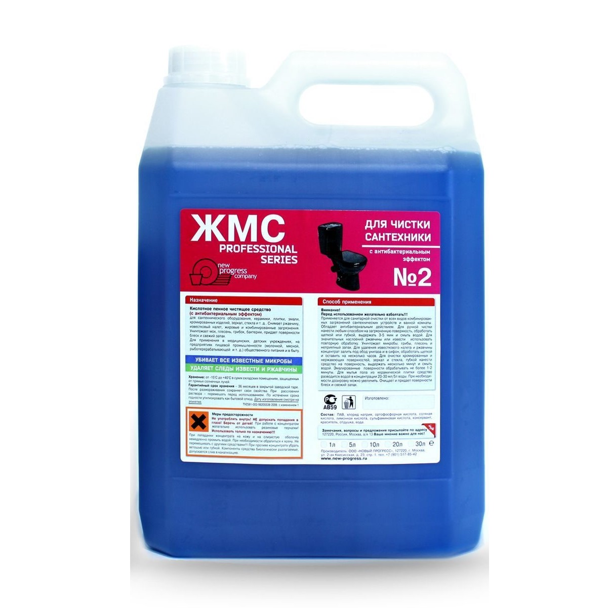 Состав: Комплекс ПАВ,(а-ПАВ 5-15% , н-ПАВ < 5%) ортофосфорная кислота, соляная кислота, лимонная кислота, сульфаминовая кислота, щавелевая кислота, краситель, отдушка, вода.