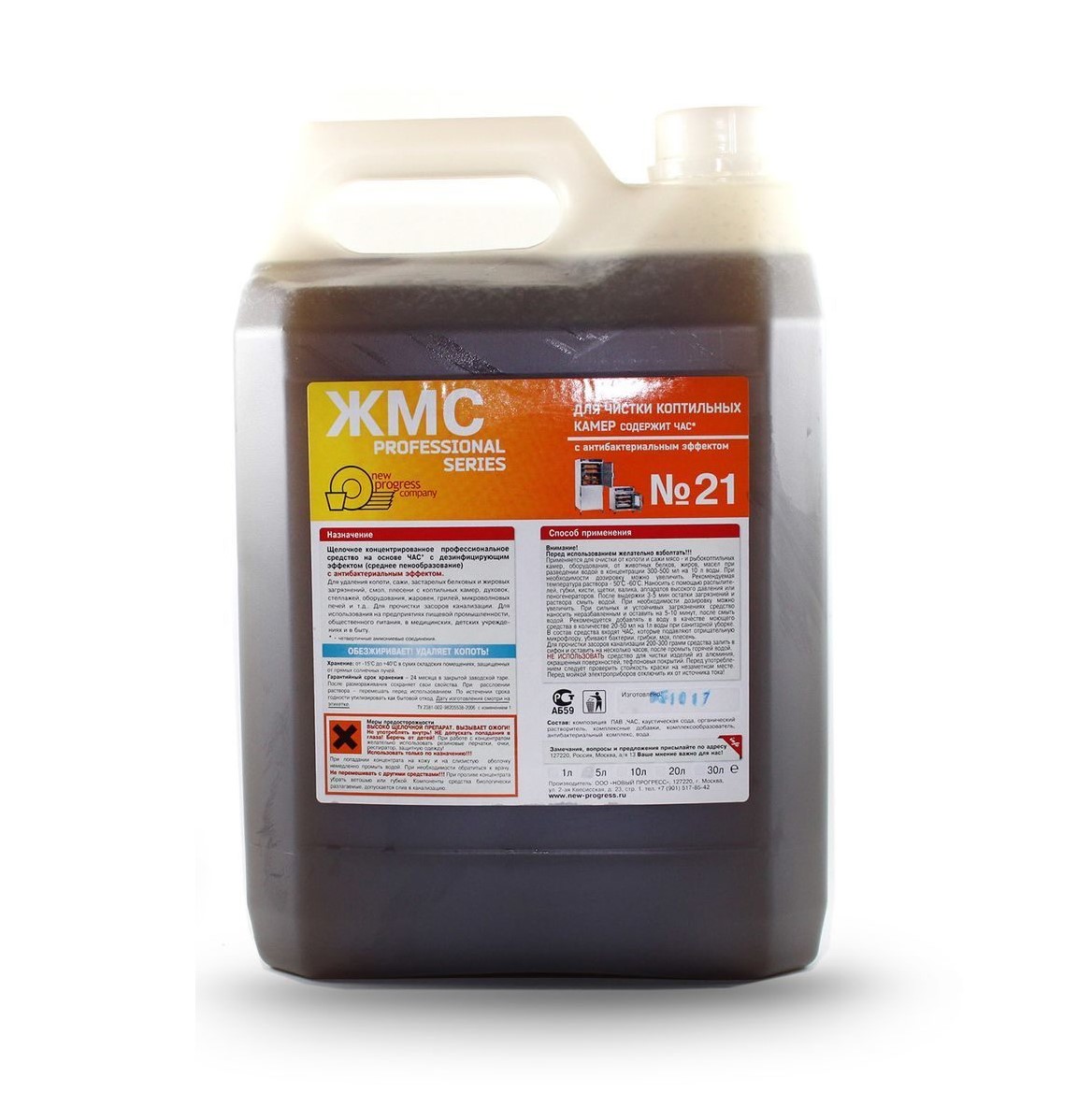 Щелочное концентрированное профессиональное универсальное моющее средство (среднее пенообразование) на основе ЧАС (алкилдиметилбензиламонийхлорид) с антибактериальным и дезинфицирующим эффектом, для удаления застарелых белковых, жировых, комбинированных загрязнений , копоти с термокамер, коптильных камер, жаровен, грилей, духовок, плит, варочных котлов, жарочных шкафов, фритюрниц, хлебопекарных и других печей, вытяжных зонтов, конвейеров, мусоропроводов, жиро уловителей с производственного оборудования и т.д.. Применяется для мытья тары, стен, полов, инвентаря, пластика, производственных помещений, от белковых, жировых, почвенных и атмосферных загрязнений.