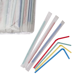 Трубочки для коктейля прямые 8х240мм(Цветные) в инд.упак.,250шт